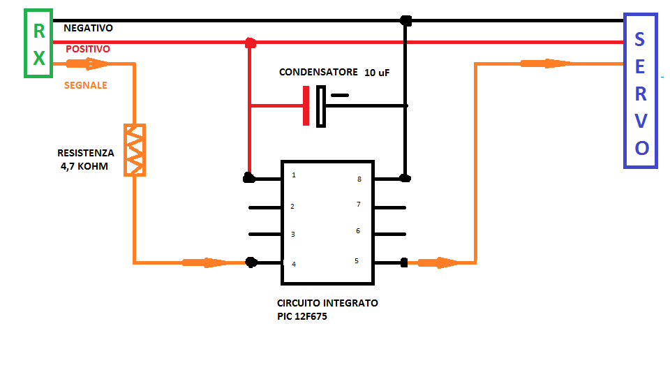 Per quanto riguarda la tipoligia del servo, il circuito funziona con entrambi dato che genera un treno di impulsi pari a quello della rx solo che la variazione da una posizione di apertura ad una di chiusura è rallentata. La differenza tra analogico e digitale sta nella tecnologia usata internamente al servo per il controllo della posizione della squadretta. In quello analogico viene usato un potenziometro per capire la posizione, in quello digitale c'è dell'elettronica a controllare il movimento.