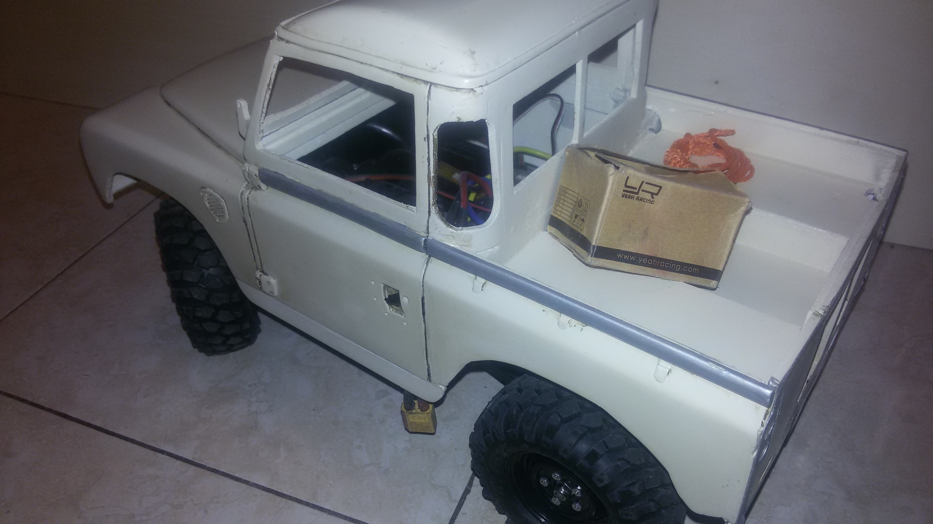 grazi angelo ..il modello in questione è questo delle foto in seguito :è un auto 4x4 autocostruita utilizzando pannelli di forex, lexan per i vetri ,alluminio in fogli per i particolari , la meccanica è su base tamiya cc-01
