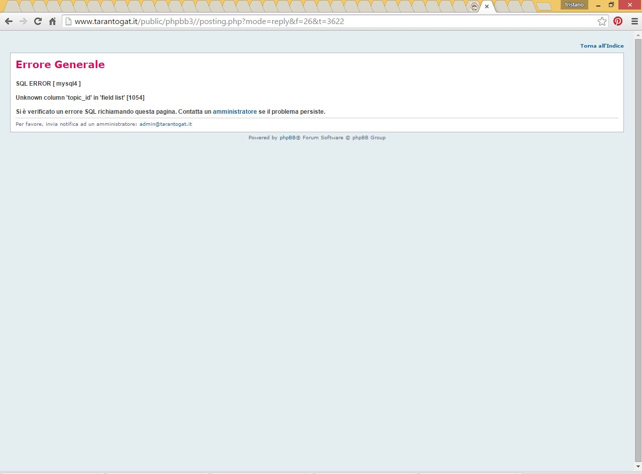 admin pero il sito fa un errore ogni volta che posti un messaggio tipo quello in foto ..ed uno crede che il messaggio non è stato postato sul sito :ecco perche vito mi ha detto tre volte che son bravo :naso: