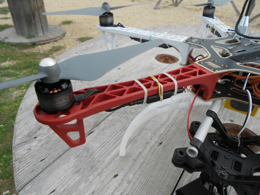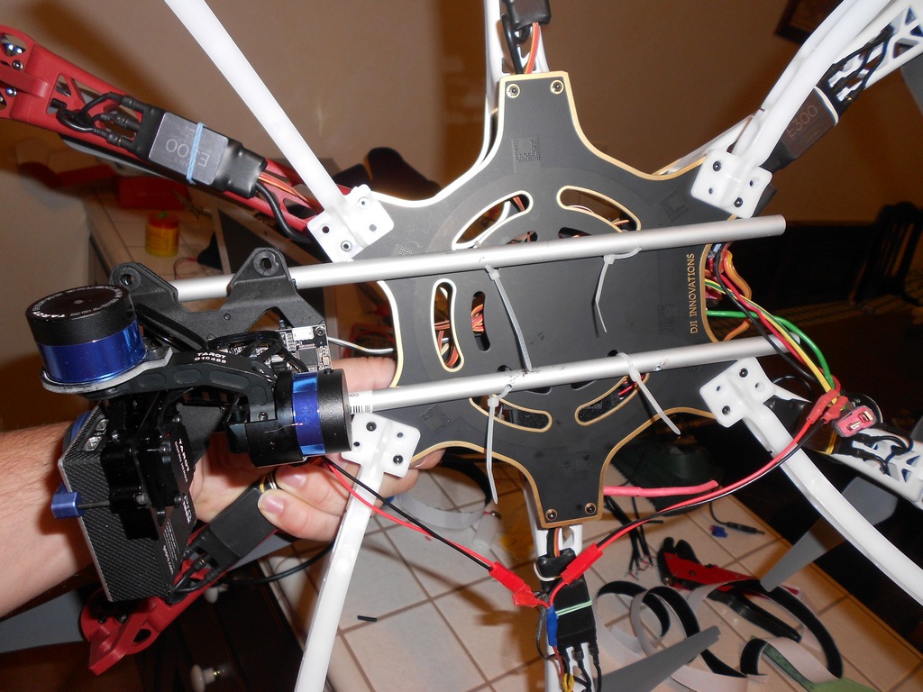 Non avendo ancora il carrello adatto ho usato due tubetti di alluminio fissati con le fascette. Il kit permette di avere un montaggio molto pulito perchè tutta l'elettronica è nascosta nel frame Ora inizia lo studio delle eliche più efficienti.
