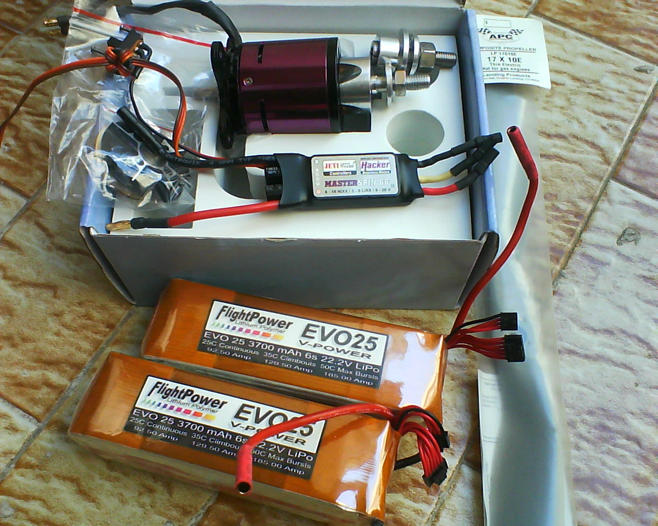 2 pacchi batteria Flightpower 3700mA 6 celle 25 c di scarica con 11 scariche.
