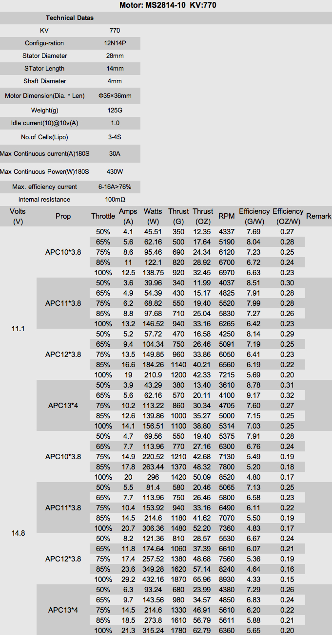 Queste è pura matematica basata sui dati forniti dalla casa costruttrice quindi tutti da verificare. Oltretutto, sempre leggendo su Barone Rosso, eliche APC e Graupner uguali come dimensioni, hanno rese differenti. Quindi semplicemente cambiando marca di elica il risultato finale può cambiare.