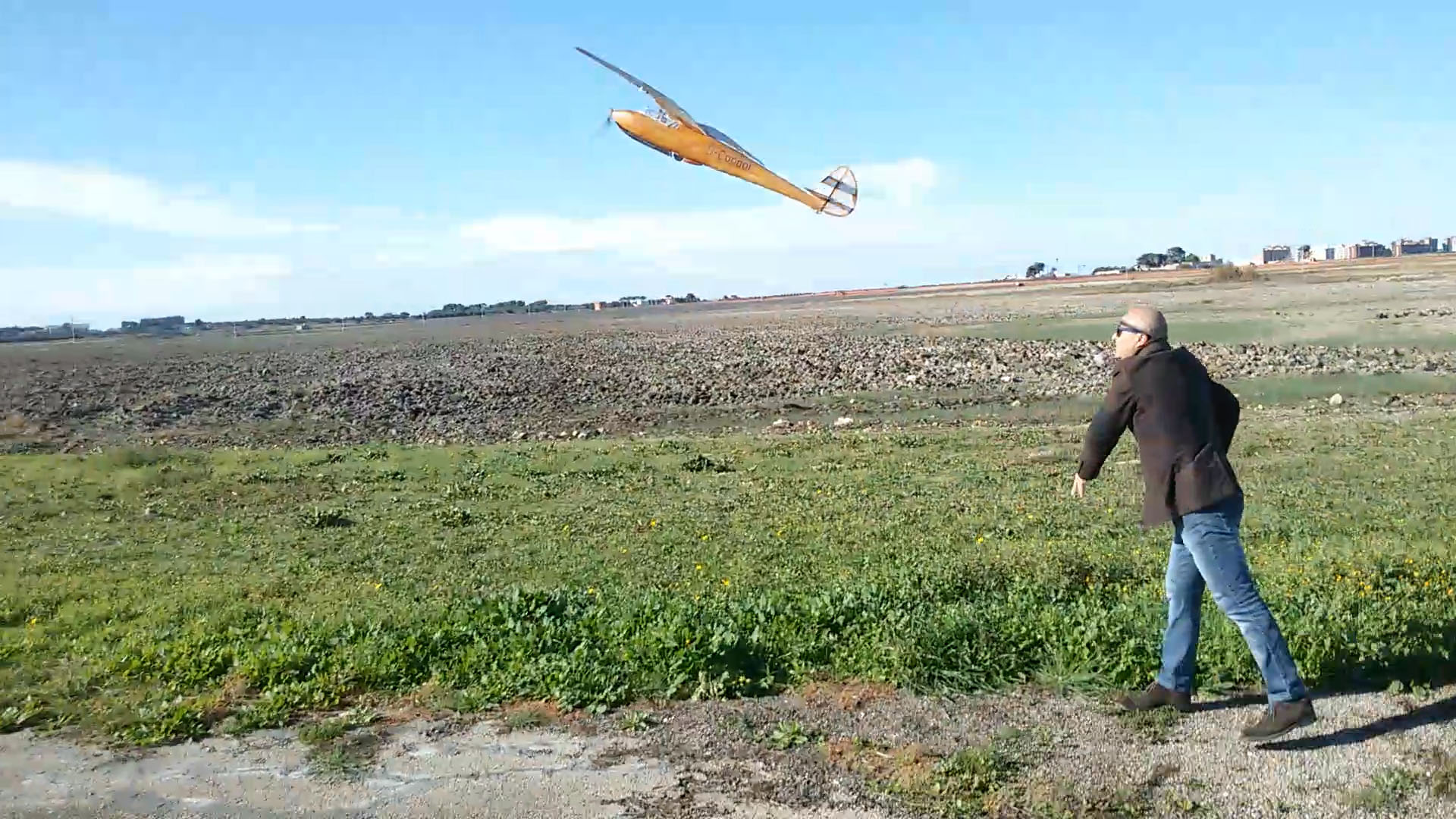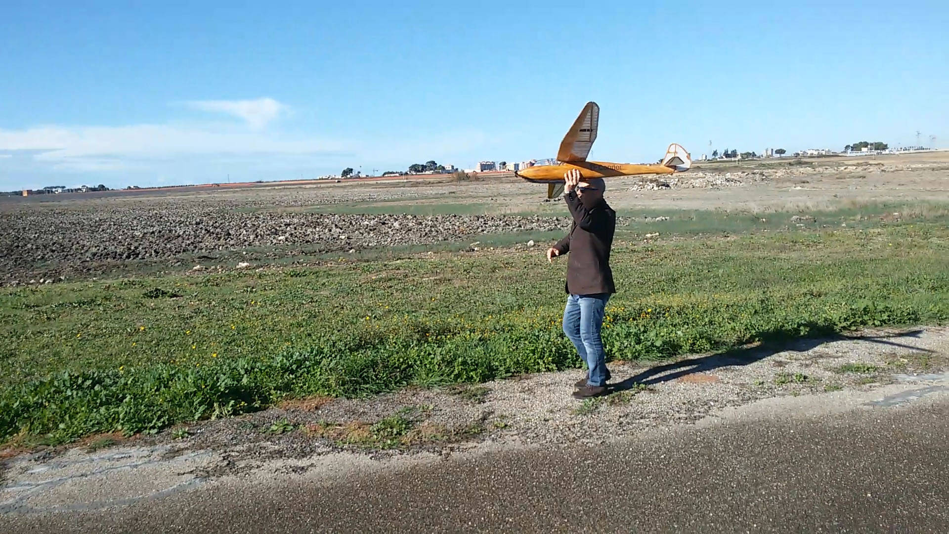 abbiamo anche collaudato con qualche difficoltà il modello era cabrato di qualche centimetro al primo volo ma i pollici del sapiente ed affidabile Antonio Scrivo lo hanno riportato a terra sano e salvo